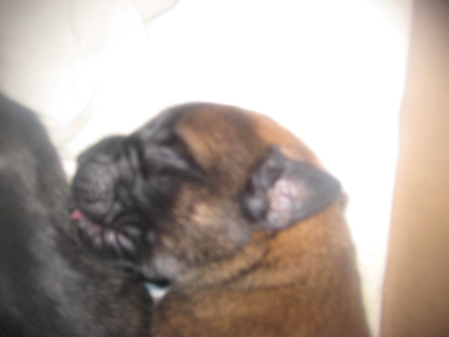 1 Apricot Male 1 Brindle Female 3 Brindle Males